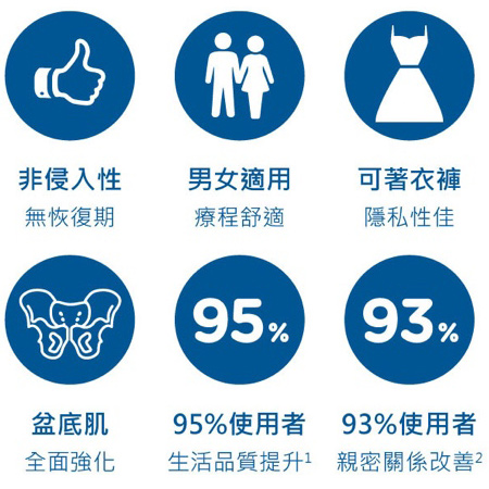 臨床上建議 1 週 2 次,一共 6 次,並在 3 週內完成整個療程,根據臨床研究報告指出,完整 3 週 6 次治療後對於尿失禁者的生活品質改善高達 95%,以及高達 93%女性性功能障礙獲得良好改善。