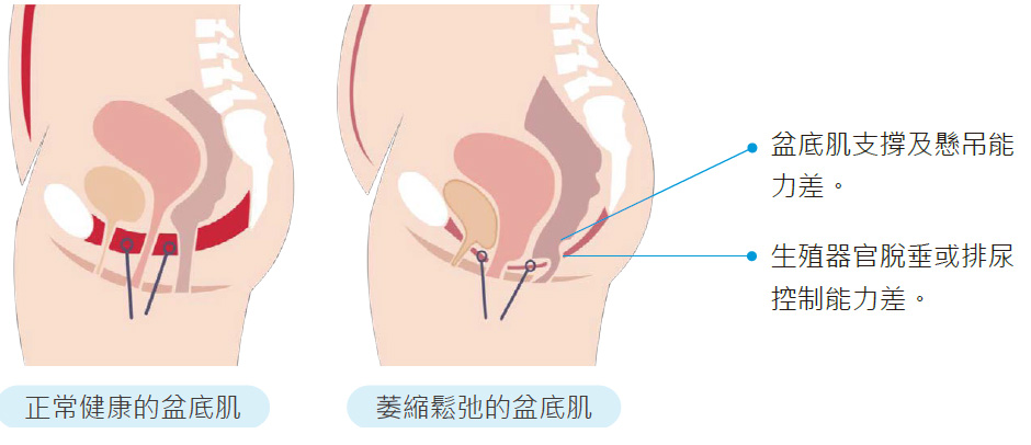 隨著年紀增長、懷孕分娩、多產、更年期荷爾蒙變化、缺乏運動、男性接受前列腺癌手術、體重過重、長期便秘、經常提取重物、慢性咳嗽等,都可能使盆底肌肌肉組織發生變化。