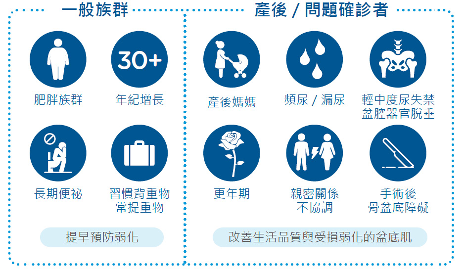 | 提升親密生活品質 | 改善尿失禁 | 長時間站立 |