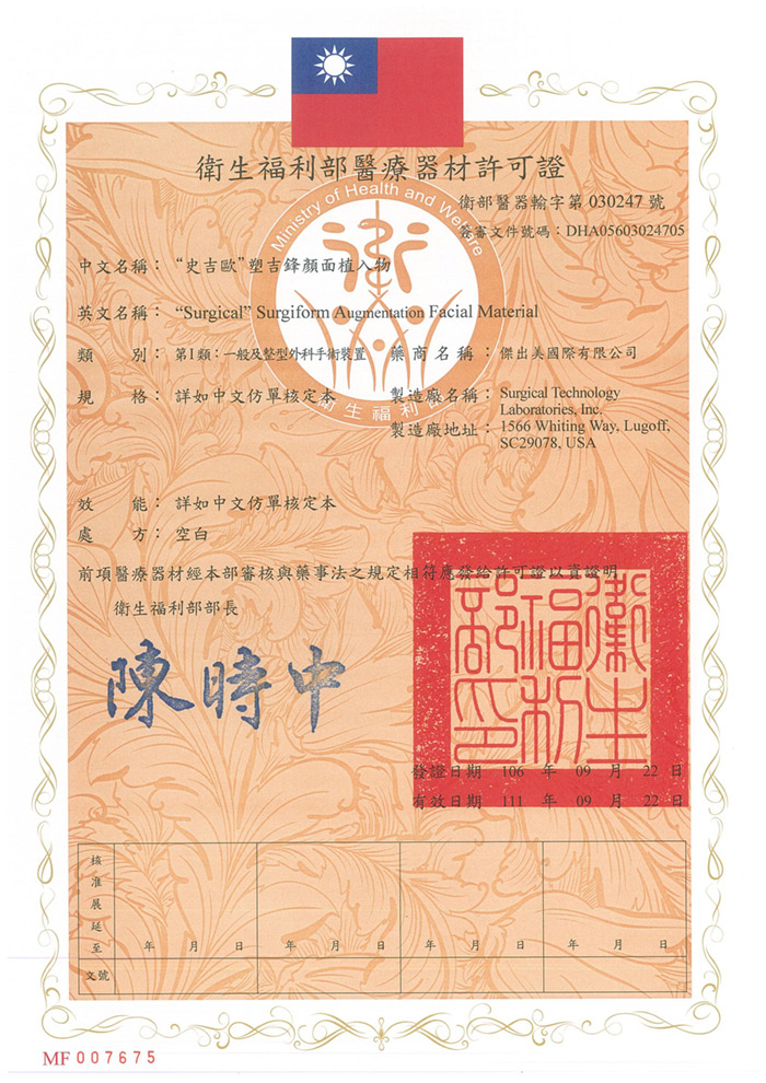 嘉仕美使用衛福部許可醫材