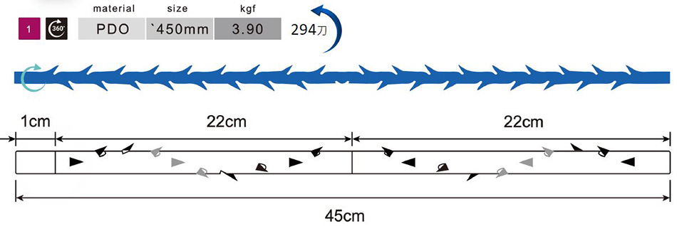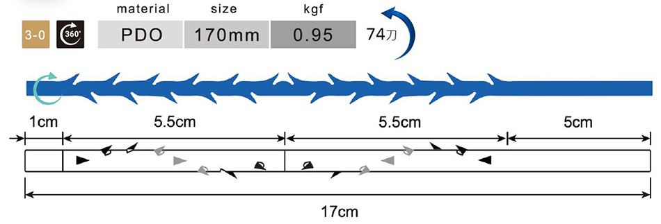 度環形設計倒鉤結構,面面俱到,具有強大的支撐及拉提能力。依每個人狀況需求不同,也可與另外二種線材搭配使用,以達到更好拉提效果。