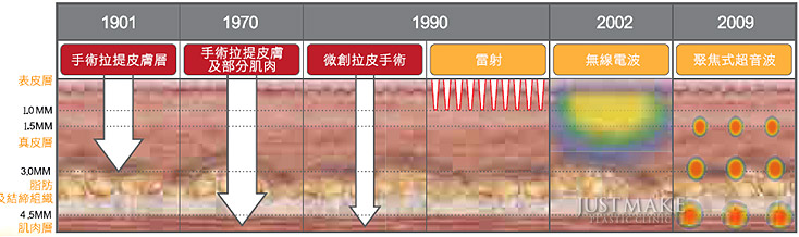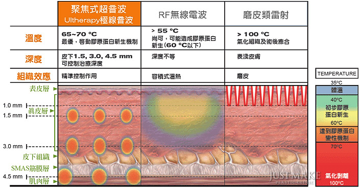 Ultherapy 與其他舊式治療能量在組織中 《 溫度和深度的差異比較 》
