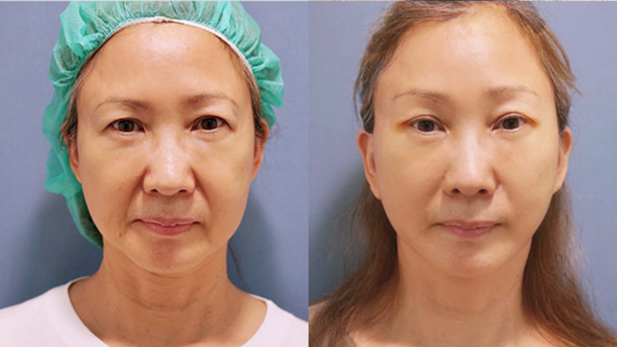 術前眉眼下垂,眼睛雖大但雙眼皮垂墜,有點疲憊與歲月的痕跡~術後眉眼上揚眼神明亮,眉眼距離拉開後雙眼皮現身,整個變年輕超多!