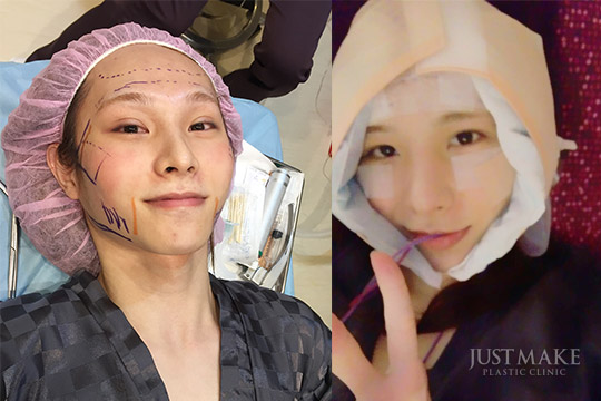 可芙看到自己的3D電腦斷層, 感到十分新鮮, 張醫師同時也解釋了各種削骨方式的優缺點, 讓可芙參考,術前可芙有點緊張, 笑不太出來, (右圖)術後就寬心多了, 不但不會痛, 還俏皮地對鏡頭比YA