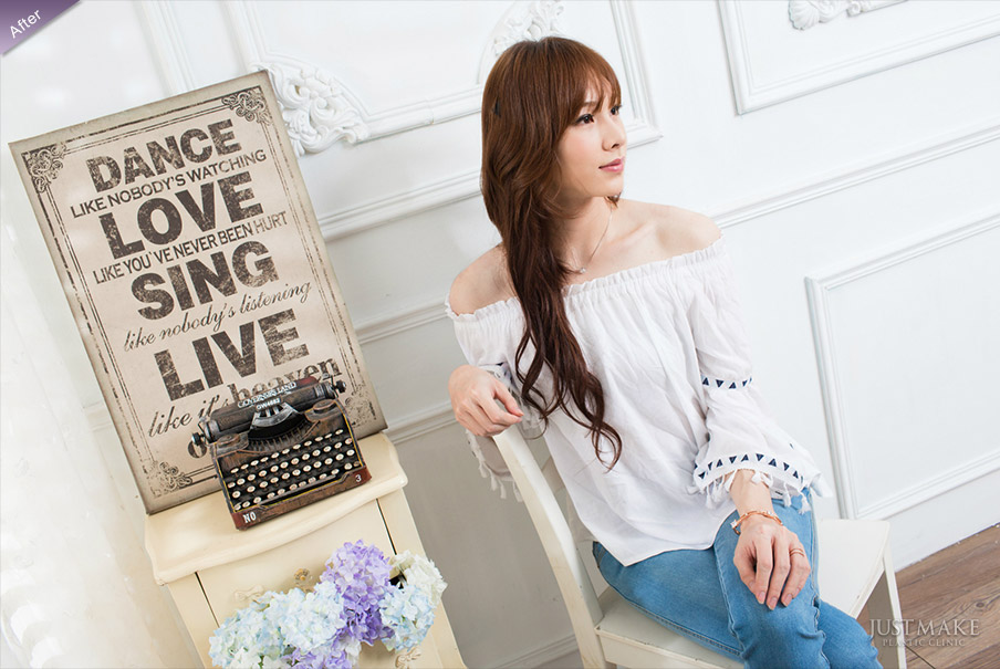 術後可芙恢復良好, 消腫也十分快速, 還不到兩週的時間, 就已經消腫逾九成, 困擾許久的臉型問題獲得改善,